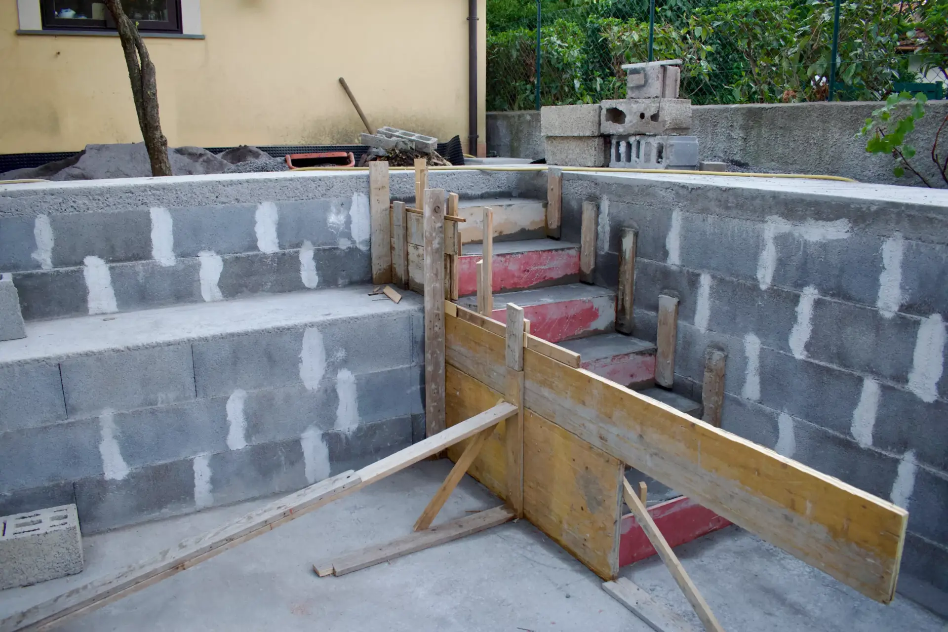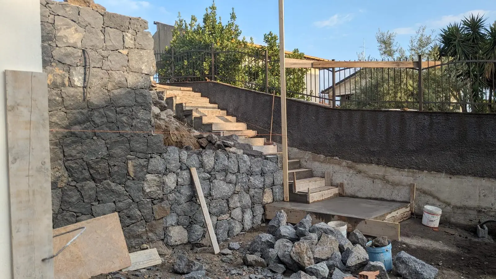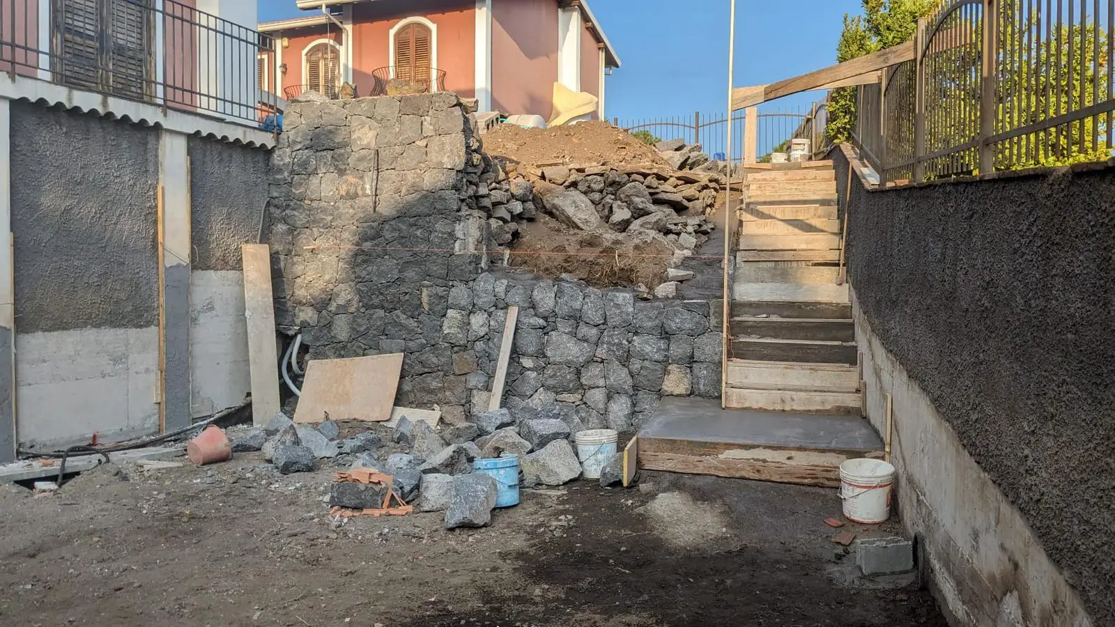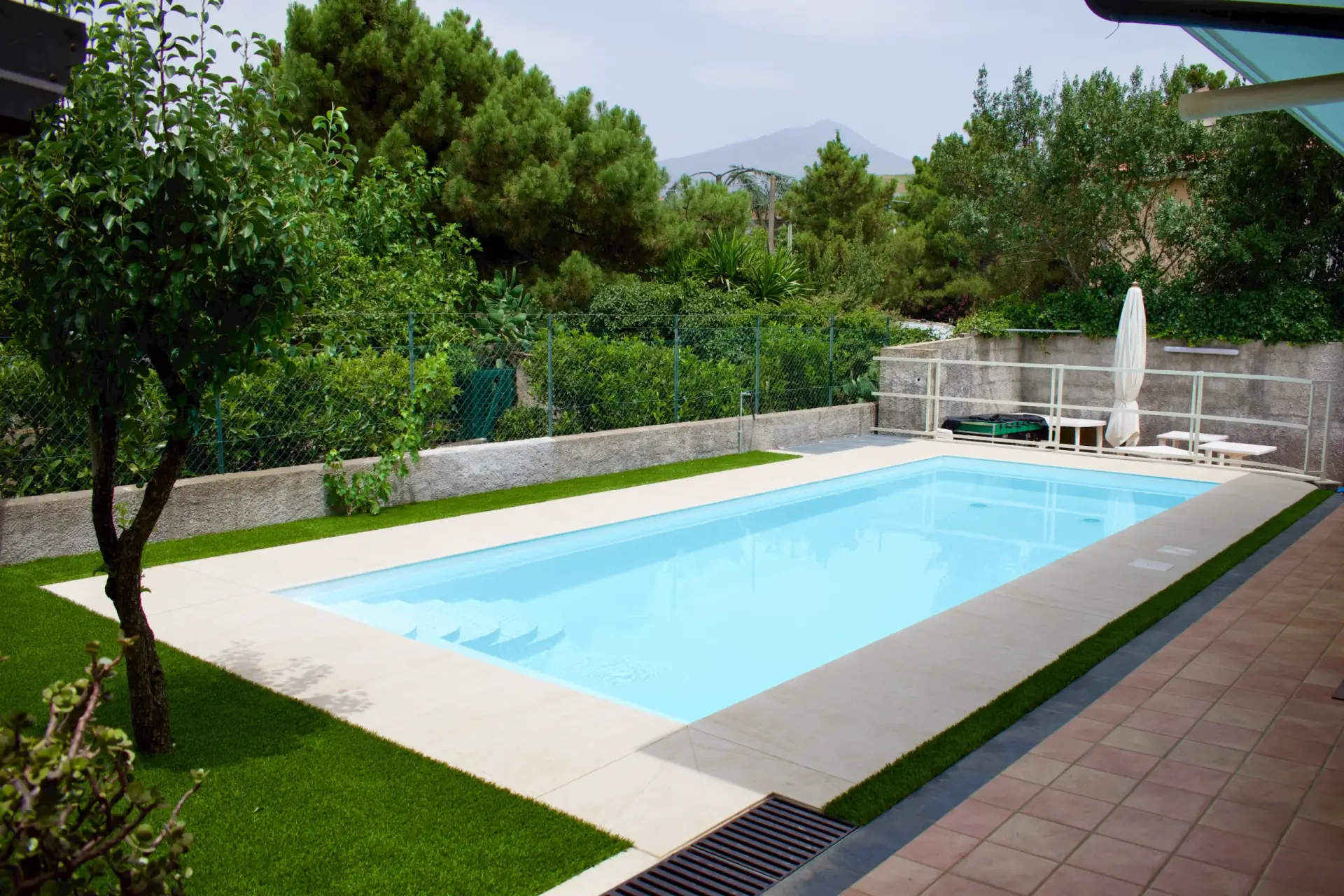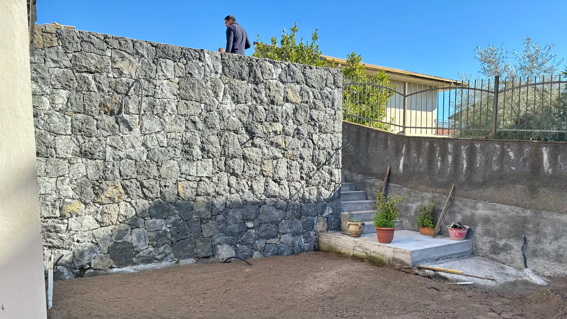 I nostri lavori Abbiamo soluzioni ad ogni esigenza Piscina interrata Dimensioni 8x3mProfondità 1.5mScala angolareSeduta sul lato cortoTelo bianco Costruzione villa singola Muro a pietra di contenimento Ristrutturazione mansarda